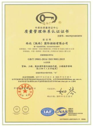 質(zhì)量管理體系認(rèn)證證書