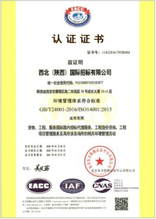 環(huán)境管理體系認(rèn)證證書