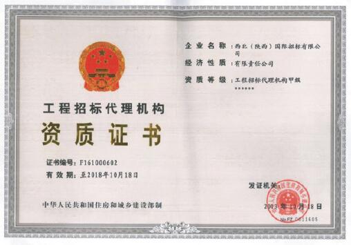 工程招標(biāo)代理甲級”資質(zhì)證書