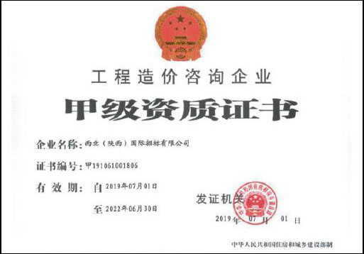 工程造價咨詢甲級”資質(zhì)證書