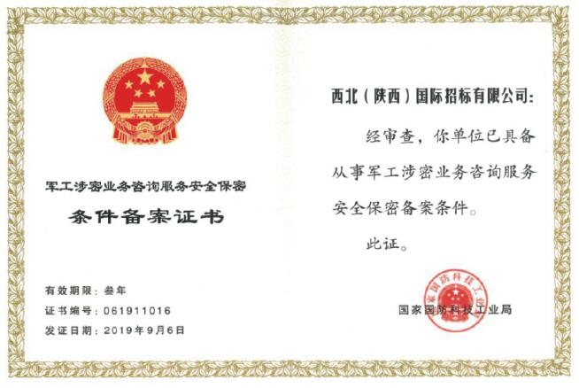 軍工涉密業(yè)務(wù)咨詢服務(wù)備案證書
