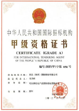 國際招標(biāo)代理甲級”資質(zhì)證書
