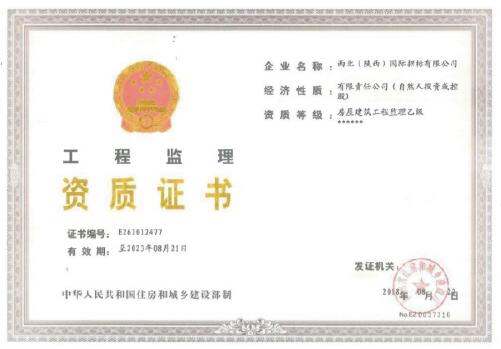 ★陜西省住建廳授予工程監(jiān)理乙級資質(zhì)