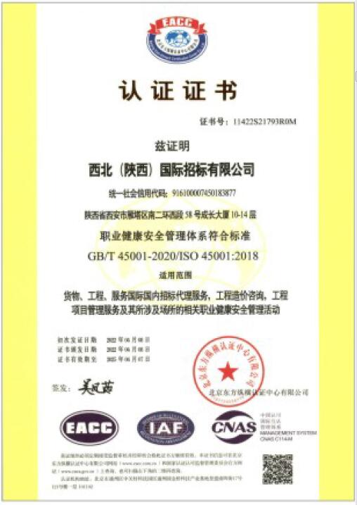 職業(yè)健康安全管理體系認(rèn)證證書