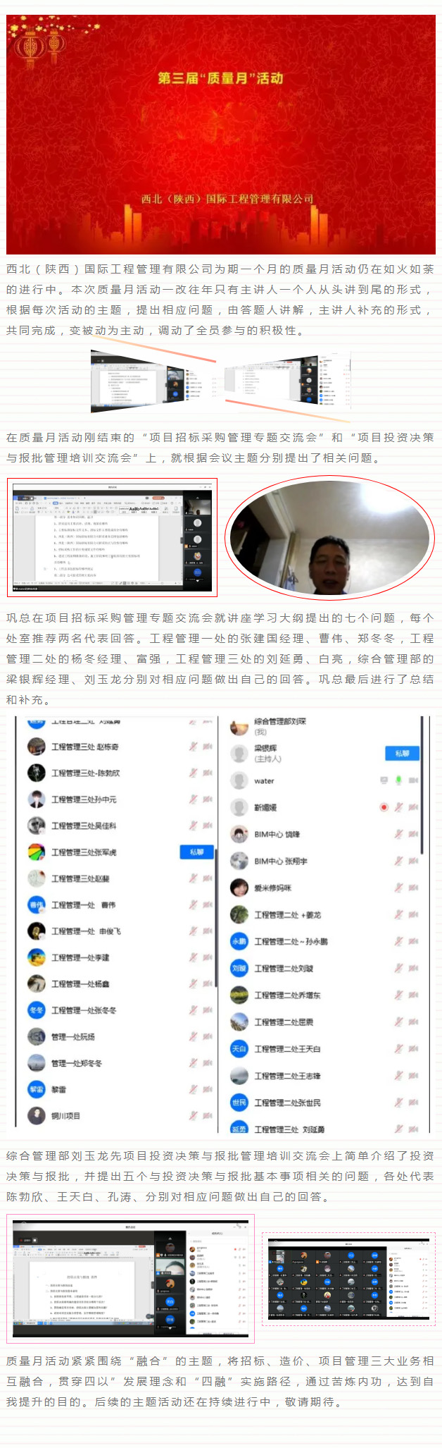 西北(陜西)國際工程管理有限公司質(zhì)量月活動持續(xù)進(jìn)行中