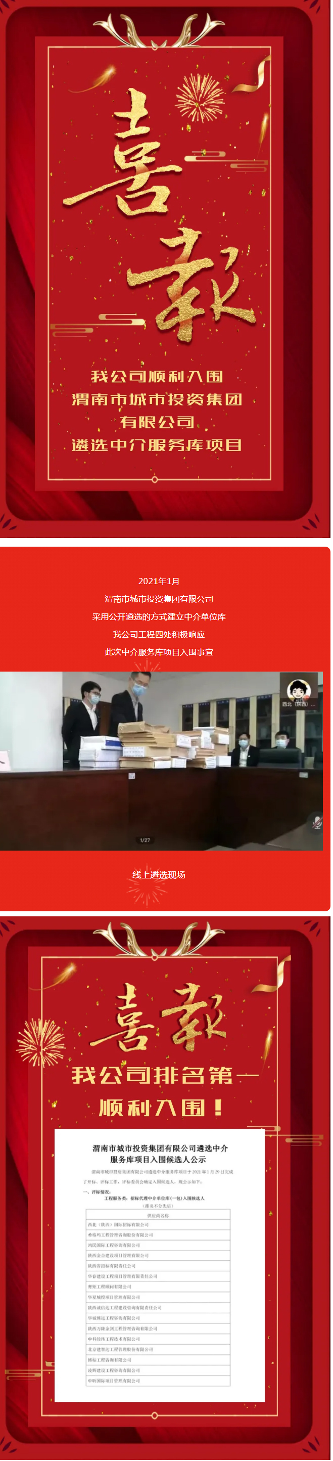 我公司順利入圍渭南市城市投資集團有限公司遴選中介服務庫項目