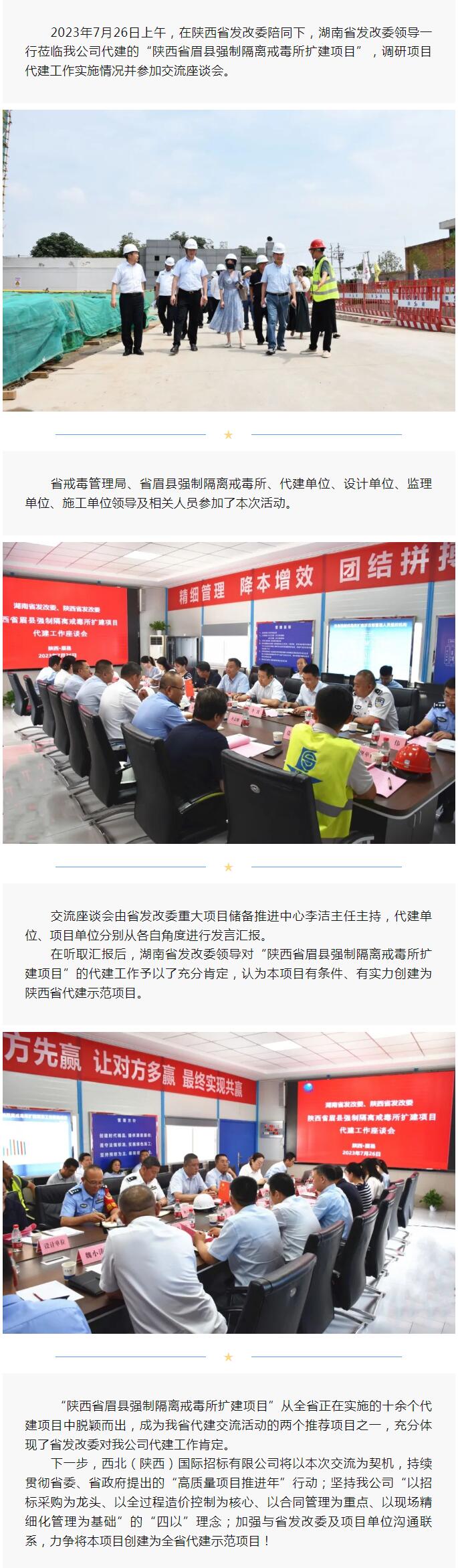 湘、陜兩省發(fā)改委領(lǐng)導(dǎo)蒞臨我公司代建“陜西省眉縣強(qiáng)制隔離戒毒所擴(kuò)建項(xiàng)目”調(diào)研并交流座談