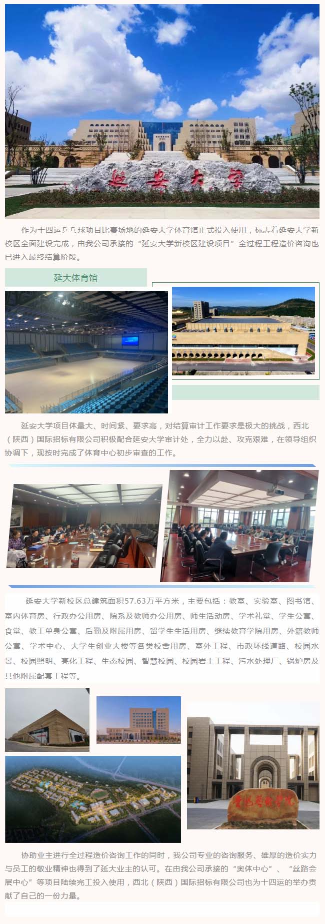 我公司全過程造價咨詢項目“延安大學(xué)體育館”投入使用,為十四運添磚加瓦